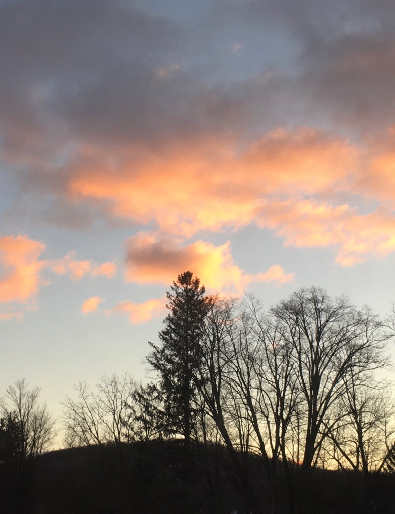 I took this picture last week (2021.02.25) at about 6:45 am because it reminds me that clouds are seldom white. Unless you are colorblind, the predominant color is not white. Do you see the orange, yellow, and grey? Do you see tinges of lavender and pink? And how about the many shades?