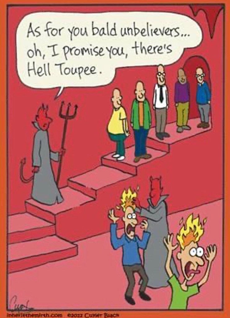 Keep in mind that there are many, like TFS and I, who have perfect heads, and the rest God put hair on!