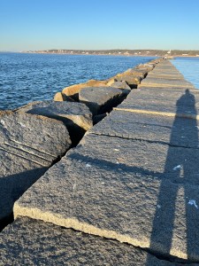 I reached the Easter Point Lighthouse and the Dog Bar Jetty on Saturday morning. As I walked out onto the jetty, I noticed the rhythm of the gaps between the granite blocks. They occurred every 3.5 feet; 2300 feet of gaps lay ahead. My rough calculation was that there were approximately 650.